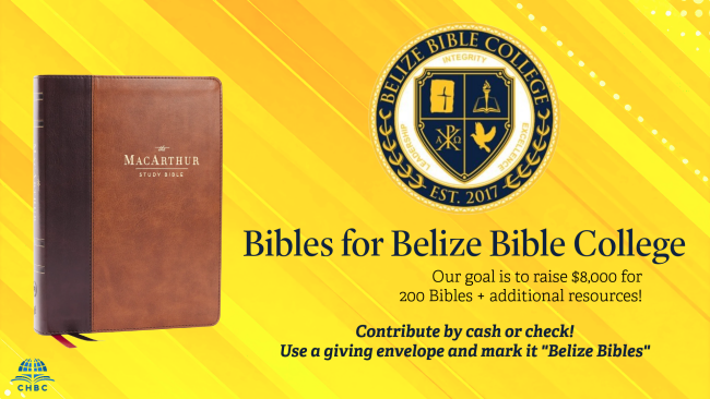 Our mission team to Belize came home with a burden to place 200 Bibles in one village in Belize. A few generous donors are offering to match every gift for Bibles given up to $4,000. If we can raise the full $8,000, we will be able to place the 200 leather study Bibles, plus provide additional Biblical resources to the library at Belize Bible College. You can give cash or checks through our normal means of offering.