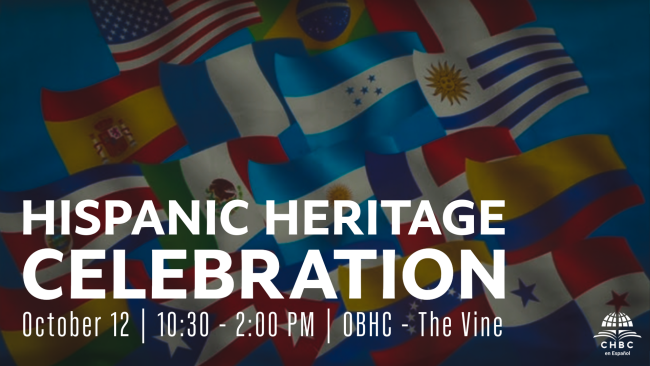 During Hispanic Heritage Month, which occurs every year in the USA, the Hispanic Ministry of CHBC will gather this Sunday, October 12th, to celebrate and give thanks to God for the cultural diversity, faith, and witness of so many Hispanic brothers and sisters who are part of our congregation. It will be a time of praise, testimonies, traditional food, and an uplifting message that will remind us how the Lord unites all nations into one body: His Church. This activity will take place in the social area of The Vine - OBHC, at 10:30 am.