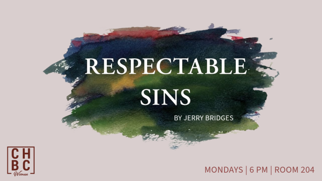Throughout the year, the Women’s Ministry of CHBC offers several Bible studies. Starting September 15, at 6:30 PM will be a Bible Study by Kimberly Johnson which will come from the book, “Respectable Sins,” by Jerry Bridges. Women of all ages are invited to come, and there is no preregistration necessary. If you have questions, please contact the church office at , or by calling 405.799.9799.
