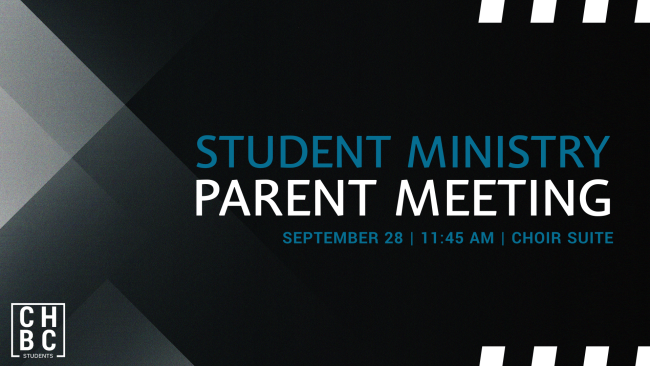 Sunday, September 28 at 11:45 AM Pastor Mark and the Student Ministry Sunday School teachers invite you to join them in the Choir Suite for a 15 minute meeting to update you on Fall activities, to give an update on the search for our next Pastor for Student and Family Ministry, and to answer any questions you may have about Sunday School, Wednesday Worship, or upcoming activities.