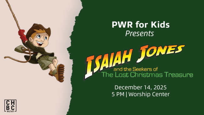 Our PWR for Kids Ministry is excited to share the good news this Christmas! Go on an adventure with us as we learn what the season of Christmas is really about and prepare our Christmas program this year: Isaiah Jones and the Seekers of The Lost Christmas Treasure! Join us on December 14 at 5 PM as the kids present their annual Christmas musical.